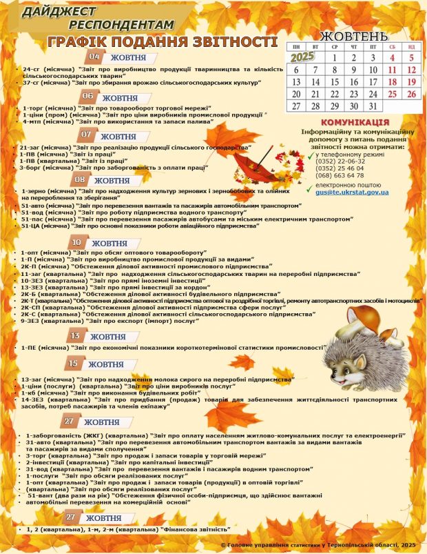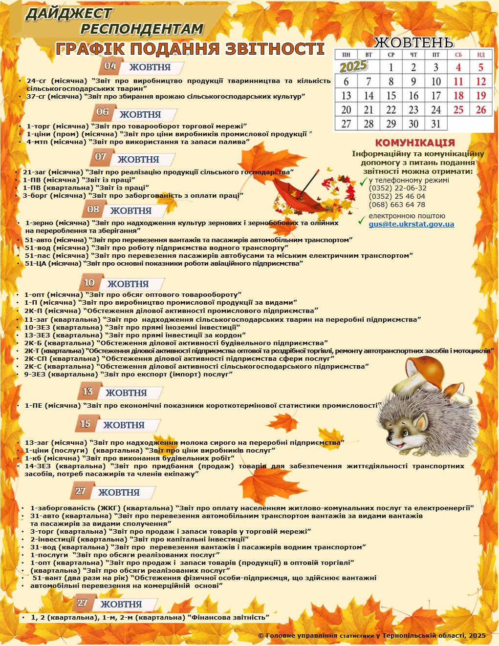 Графік подання звітності для респондентів у жовтні 2025 року 15.10.2025 Новини статистики statnewsНовини